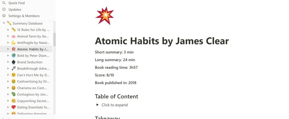 Summary Database: Lifetime Access to +100 Book Summaries Written by Yours Truly on Notion.