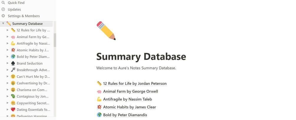 Summary Database: Lifetime Access to +100 Book Summaries Written by Yours Truly on Notion.